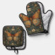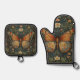 Elegant retro boho butterfly botanical greenery oven mitt & pot holder set