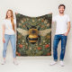Elegant retro bumblebee boho botanical floral art fleece blanket