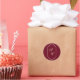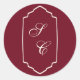 Wedding round stickers featuring a digitally hand drawn frame with your personalized monograms in elegant script and serif fonts on a burgundy background. You can find more matching products from this stunning wedding collection in our store.