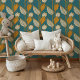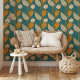 Elegant Retro Floral Wallpaper in Teal and Mustard