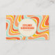Colourful and fun with details and colours that make your business catchy and different. A Vintage retro Psychedelic colourful wavy lines square business card. That features a handmade groovy boho abstract wavy lines With blue and orange and beige cream colours. It has nostalgic seventies and sixties vibes and colours and groovy fonts. With customisable name and profession and social media . Perfect for a small business branding.