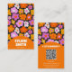 Elegant Retro Orange QR Code Boho Groovy Floral Business Card