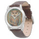 The watch looks really great!  Very sharp and well done. The leather band is really nice, though for a man's watch I think it should be longer. Unfortunately, it isn't big enough for my husband's wrist but I will get a replacement because he is very excited to wear it!