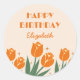 Elegant Retro Tulip Floral Orange Birthday Classic Round Sticker