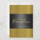 Luxurious Ramadan or Eid Mubarak greeting card with engraving gold rhombus pattern and black banner with monogram script font type. Greetings to your friends and family who will be fasting during Ramadan. All text could be easily customised.