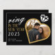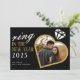 Celebrate your engagement with this stylish and modern announcement christmas card! Featuring a black and gold colour scheme, a chic diamond ring symbol, and your beautiful engagement photo in a golden heart, this card is the perfect way to share your exciting news with family and friends.