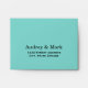 This elegant wedding RSVP envelope features a robin egg blue background with the response address printed on the front in white calligraphy. A fresh and striking complement to your robin egg blue wedding stationery suite. Personalise with your return address details.