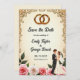 This elegant watercolor floral save the date invitation is perfect for a modern wedding. The romantic design features a sleek watercolor floral frame with a bride and groom illustration and black calligraphy on a decorated beige background.