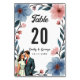Elegant Romantic Couple Watercolor Floral Wedding Table Number