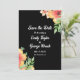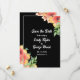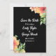 This elegant floral wedding save the date invitation is perfect for a modern summer wedding. The romantic design features beautiful watercolor wildflowers with elegant white calligraphy on a black background.