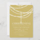 This modern and stylish religious invitation flat card features chic sparkling drape rosary beading on the front with a glowing cross and classic typography.
