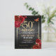 Elegant Faux gold confetti highlights on the top and bottom border. Bright deep red roses with gold floral accents. All text is adjustable and easy to change for your own party needs. Great elegant 50th birthday template design.