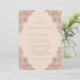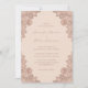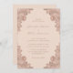 These elegant rose gold and champagne wedding invitations featuring rose gold floral lace on a champagne background are perfect for inviting your guests to your champagne and rose gold rustic wedding party.