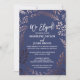 This elegant rose gold and navy elopement reception invitation card is perfect for a classy elopement party. The design features a stunning blush pink leafy frame on a dark blue background and is paired with a dazzling cursive font. RSVP cards are sold separately.