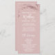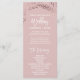 This elegant rose gold and pink wedding program is perfect for a classy wedding. The design features a stunning faux rose gold foil leafy frame on a blush pink background and is paired with a dazzling cursive font. Include the name of the bride and groom, the wedding date and location, thank you message, order of service, bridal party and an optional "in loving memory" memorial.