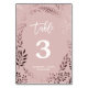 This elegant rose gold and pink wedding table number card is perfect for a classy wedding. The design features a stunning faux rose gold foil leafy frame on a blush pink background and is paired with a dazzling cursive font. Add each table number that you need to your cart individually.