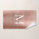Elegant Rose Gold Brushed Metal Monogram Script Bath Towel Set