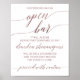 Elegant Rose Gold Calligraphy Caution Open Bar Poster
