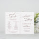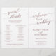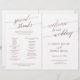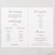 This elegant rose gold calligraphy folded program is perfect for a simple modern wedding. The blush pink design features a minimalist card decorated with romantic and whimsical faux rose gold foil typography. Include the name of the bride and groom, the wedding date, quote, order of service, bridal party, reception timeline, dinner menu and special thanks.