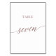 This elegant rose gold calligraphy table seven table number is perfect for a simple wedding. The neutral design features a minimalist card decorated with romantic and whimsical faux rose gold foil typography. The card prints on the front and back (double-sided). Other table numbers in the collection are sold separately.