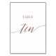 This elegant rose gold calligraphy table ten table number is perfect for a simple wedding. The neutral design features a minimalist card decorated with romantic and whimsical faux rose gold foil typography. The card prints on the front and back (double-sided). Other table numbers in the collection are sold separately.