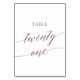 Elegant Rose Gold Calligraphy Table Twenty One Table Number