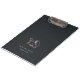 Island chic personalized clipboard features two lines of custom text in classic white lettering, on a rich soft black background adorned with a tropical conch shell illustration in faux rose gold foil. Design repeats on reverse side. Add your name or business name to this elegant clipboard with a modern beach vibe.