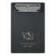 Island chic personalized clipboard features two lines of custom text in classic white lettering, on a soft black background adorned with a tropical conch seashell illustration in faux rose gold foil. Design repeats on reverse side. Please note that this clipboard is a mini size; full size version also available in our Conch Shell collection.