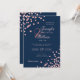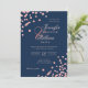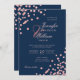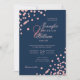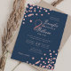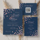 Elegant Rose Gold Confetti QR Wedding Navy Blue Invitation