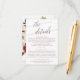 This elegant rose gold floral details insert card is perfect for a fall wedding. The design features romantic and whimsical faux rose gold foil typography with a gorgeous bouquet of blush pink, marsala and burgundy flowers on the backing.