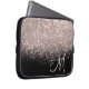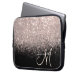 Elegant Rose Gold Glitter and Black Monogrammed Laptop Sleeve
