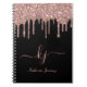 Rose Gold Glitter Drips 2 Monogram Script custom personalised name monogrammed notebook. Featuring a faux blush pink rose gold glitter dripping frame, large double hand lettered monogram script font with swashes (large size initials), and a full name in pink on black background. Easy to personalise it. Great feminine girly gift for girlfriend, mother, birthday, wedding, bridal shower, sweet 16 birthday party and baby shower, business, home office, professional work and for anyone who like pretty glam things.