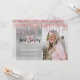 This modern invitation design features faux rose gold dripping glitter, silver metallic texture and elegant calligraphy font. Add your favourite photo.
