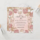 "Elegant Rose Gold Glitter Painted Floral Bridal Invitation." Pale pastel blush pink background is combined with oil pastel painterly Peony and Ranunculus flowers in a square invitation format. Vintage scroll work leaf greenery in rose gold glitter adds a touch of glam. All artwork was painted by internationally licensed artist and designer, Audrey Jeanne Roberts, copyright.