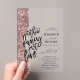 Elegant rose gold glitter script wedding invitation. Have fun at your wedding with this elegant invitation. Invite your guests to raise a glass and join in on the fun with these festive invitations.