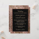 An elegant modern rose gold glitter and black wedding invitation. This invitation is part of a complete set.