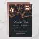 Notify guests of your upcoming destination, beach, or tropical island wedding with these beautiful summer save the date cards featuring real rose gold foil hibiscus flower illustrations on a rich, soft black background. Elegant white script and block lettering displays your wedding details (names, wedding date, location, and website).