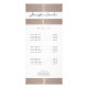 An elegant styling for your name or business name is centred on top of a faux rose gold leaf pattern across the header of this customisable rack card. All type is fully customisable and can be modified for different brands. These rack cards are perfect for price lists, service menus, or promotional uses. Design © 1201AM Design Studio