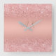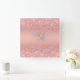 Elegant Rose Gold Luxe Shimmer Monogram Square Wall Clock
