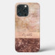An elegant and stylish rose gold and plum monogram name iphone 13 pro cell phone case. Case has a soft feminine ephemera style. Designed for you by Blackberry Boulevard.