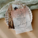 This luxurious faux rose gold vellum wedding invitation features a chic ombre glitter effect at the top, adding a touch of glamour to your special day. The transparent overlay elegantly displays modern calligraphy and refined serif fonts, creating a sophisticated and timeless look. With a romantic photo background, this invitation is perfect for contemporary couples seeking a stylish and elegant wedding aesthetic.