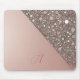 Showcasing a brushed rose gold shimmer design with sparkling glitter accents and a customizable first letter monogram in flowing script, this chic mouse pad is the perfect gift for bridal showers, birthdays, and a chic accessory for your desk.