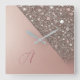 Featuring a brushed rose gold shimmer design with sparkling glitter accents and a customisable first letter monogram in flowing script, this stunning wall clock is the perfect addition to the bridal suite, wedding decor, or as a cherished keepsake for the bride-to-be.