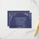 This elegant rose gold and navy wedding reception card is perfect for a classy wedding. The design features a stunning blush pink leafy frame on a dark blue background. Personalise this detail enclosure card with your reception information and include your wedding website address too!