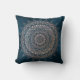 Gorgeous circular floral mandala design throw pillow in luminous rose gold on deep teal background, inspired by mehndi henna body art. This meditative art design pillow makes a beautiful accent to you home decor.