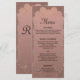 A stylish, vintage rose gold wedding reception menu to match a full wedding suite containing over 20 matching wedding favours, including invitation, announcements, save the dates and more, which you can find here: https://www.zazzle.com/collections/rose_gold_wedding-119523749737675634 The design features a lovely, luxurious damask pattern in rose gold and blush pink. All details can be fully customised.