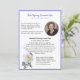Elegant German / English death announcement done in white, with a picture of a pretty white rose and a circular custom photo area. A lovely peom and custom text are ready to personalise to suit your needs.