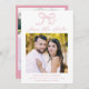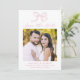 Share the joy of your upcoming wedding with this romantic rose pink photo save the date card. A hand-drawn bow in soft rose pink sits at the top, paired with elegant calligraphy that reads “Save the Date.” Your square engagement photo is featured in the centre, with your names, wedding date, and location displayed beneath in a classic layout. The back showcases a full vertical photo with space for your wedding website. Perfect for spring and summer weddings, or any romantic celebration, this design blends timeless style with a touch of sweet sophistication.