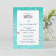 Elegant Rose Teal Silver Crown Floral Quinceanera Invitation
