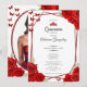 This elegant red quinceanera invitation has a red tiara crown, red roses, and red butterflies with a personalizable template to create your own message. The invitation template is customisable in the listing editor and is also available as a digital download that's printable after you personalise it.